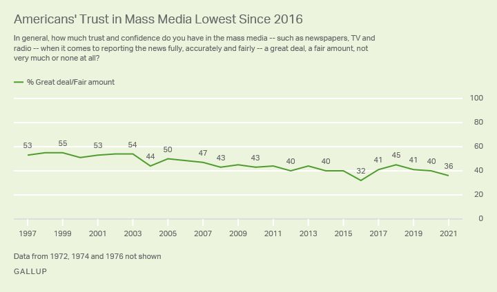 Americans' Trust in Media Dips to Second Lowest on Record