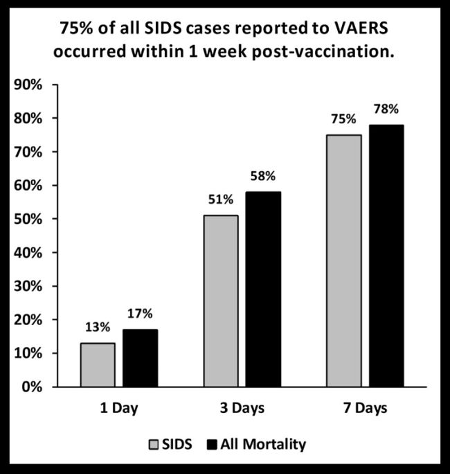 This study found that a substantial proportion of infant deaths and SIDS cases occurred in temporal proximity to vaccine administration. The excess of deaths during these early post-vaccination periods was statistically significant (p < 0.00001).