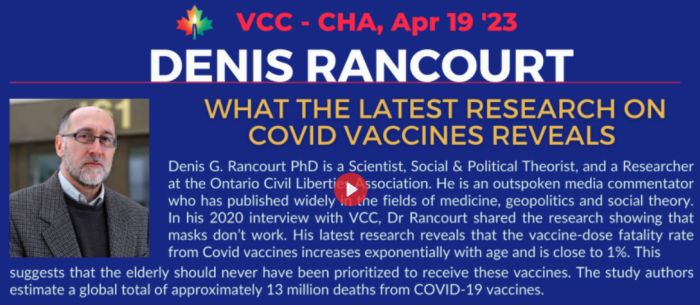 Presenting the findings of a recent meta-analysis examining the cost-benefit ratio of lockdowns. Professor Denis Rancourt is a former professor of physics at the University of Ottawa and a researcher with the Ontario Civil Liberties Association. During the NCI hearings in Quebec City and Ottawa, Dr. Rancourt testified about all-cause mortality, regarding both the actual causes of death and the quantified lethal toxicity of the COVID-19 injections.